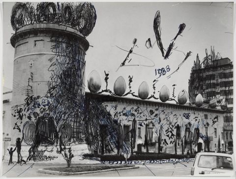 Esbós per a la instal·lació del Taxi Plujós del Teatre-Museu Dalí